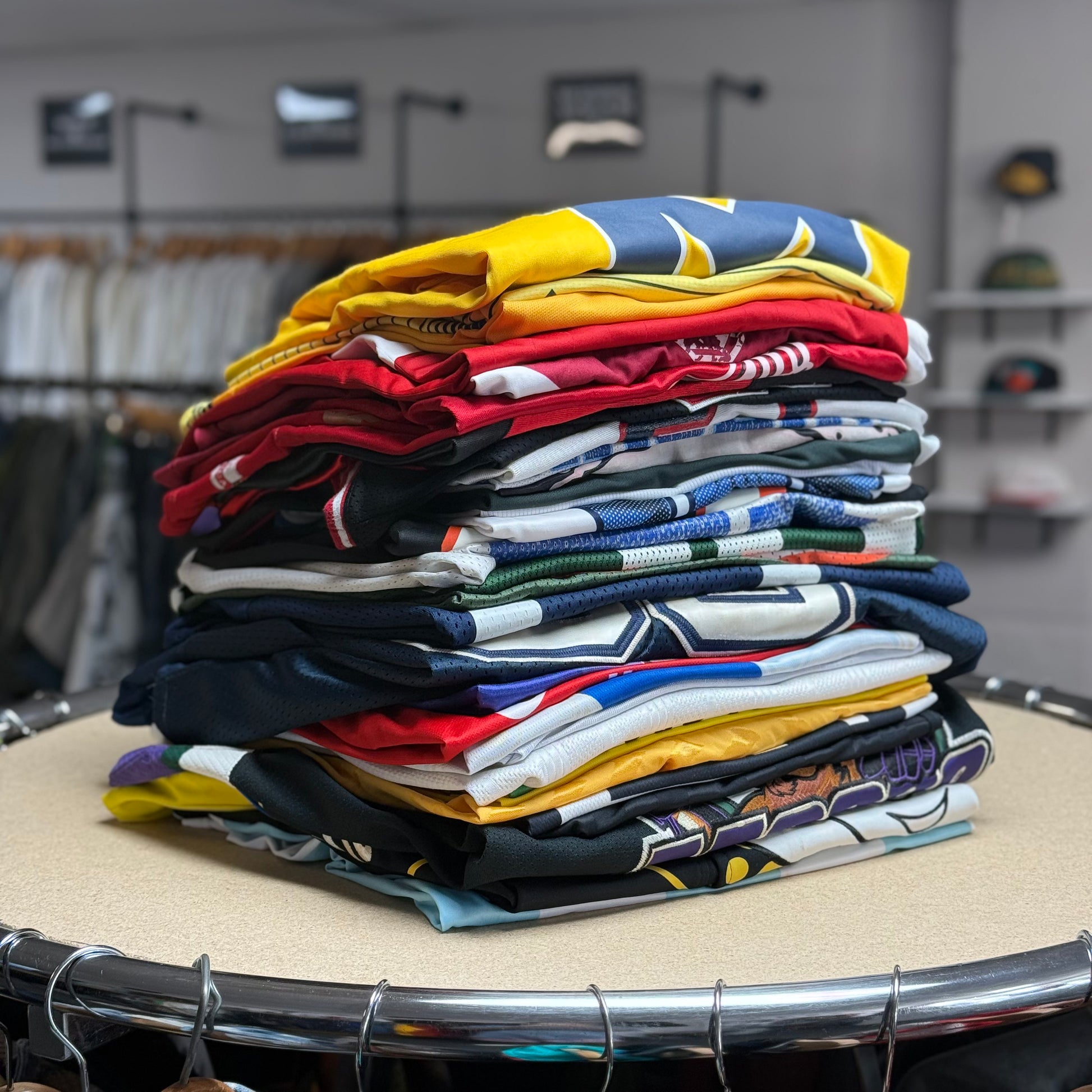 - All items are in pre-owned condition and may contain minor imperfections. A , B , and C grade Shirts are included in this Bundle.