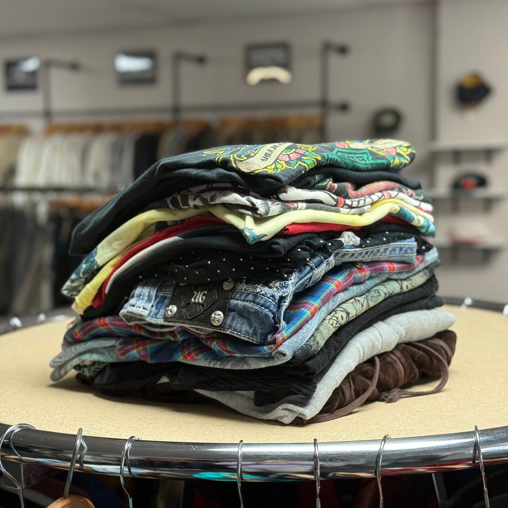 - Includes a Variety of Women's Y2K Shirts, denim, pants, etc.